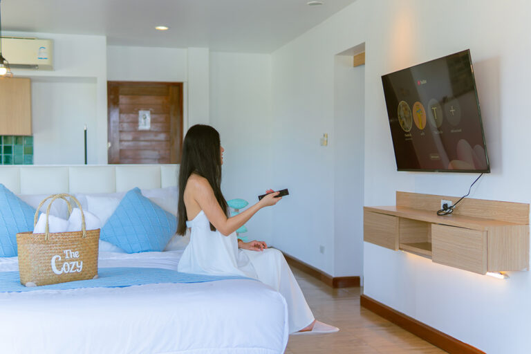 Our Deluxe Room at The Cozy Beach Front is thoughtfully designed for those who seek a little more space, more sunlight, and more moments of pure serenity. With contemporary coastal decor and a private balcony overlooking the horizon, it’s the perfect backdrop for your ultimate seaside retreat.”